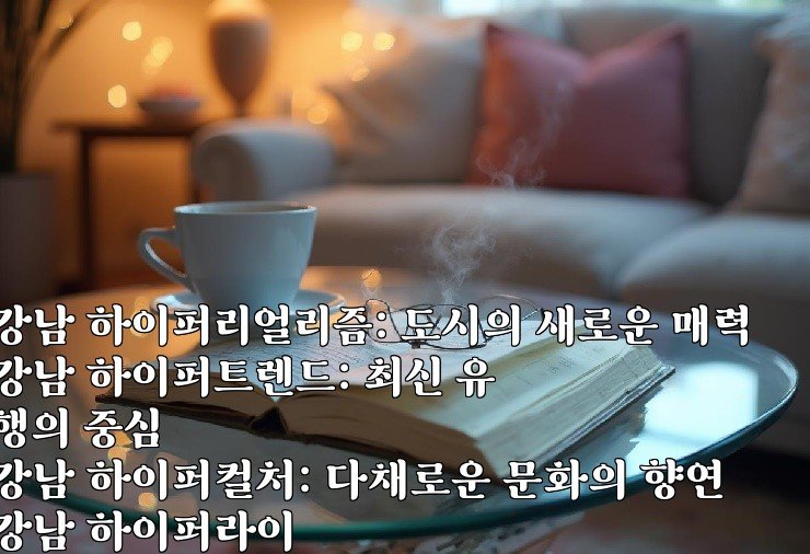 강남 하이퍼리얼리즘: 도시의 새로운 매력 강남 하이퍼트렌드: 최신 유행의 중심 강남 하이퍼컬처: 다채로운 문화의 향연 강남 하이퍼라이프: 도시에서의 특별한 경험 강남 하이퍼커넥션: 사람과 사람을 잇는 공간